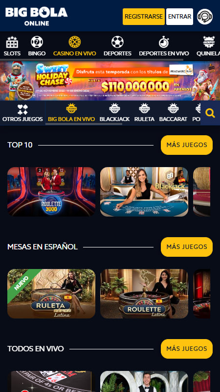 La web no cuenta aún con una BigBola app móvil, y en pleno 2025 eso se nota. Con tantos jugadores que prefieren el celular para todo, la falta de una aplicación propia es una oportunidad que se les escapa. Aun así, la versión móvil cumple: se adapta bien a la pantalla, las tragaperras cargan sin problemas y puedes apostar desde el navegador sin echar de menos casi nada… salvo un icono en tu pantalla de inicio.