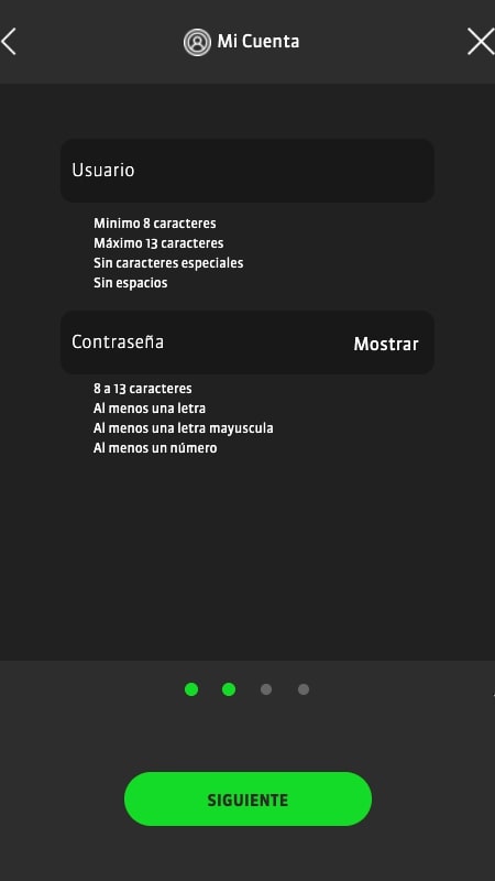 Crea un nombre de usuario y una contraseña para futuros accesos.